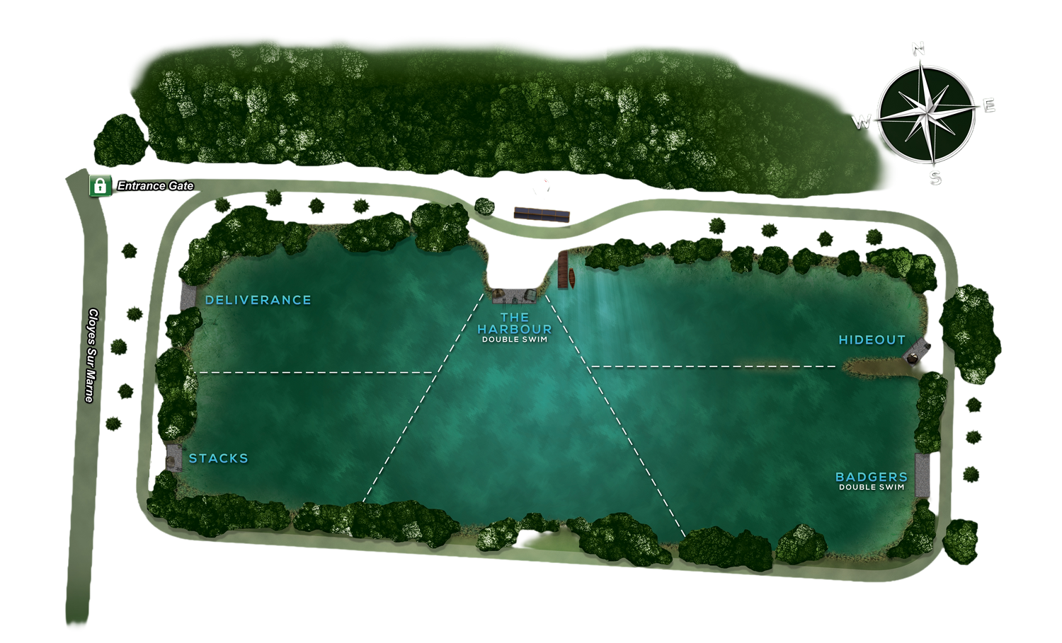 Our swims are designed with you in mind with the exception of Hideout, they boast 35sqm and are big enough to accommodate even the largest of Bivvy's with plenty of room spare! Each swim commanding a large amount of margin with over hanging canopies.
